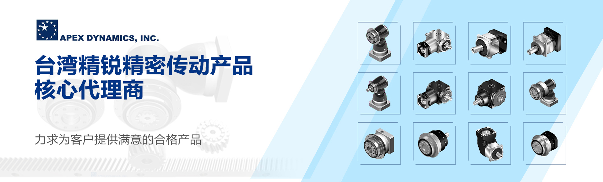 展出的主要產品有:臺灣精銳行星齒輪減速機、臺灣精銳精密齒輪齒條、臺灣飛梭直線導軌、防塵型直線導軌、微型導軌、YM-VII